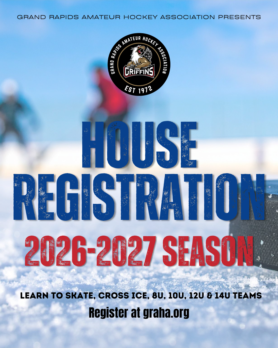 GRAHA offers House Hockey for 10U through 14U. All practices and home games are at Patterson Ice Center or at Griff's Icehouse Belknap. In cases where more than one house team is offered, an evaluation skate will be held and fair teams will be drafted.